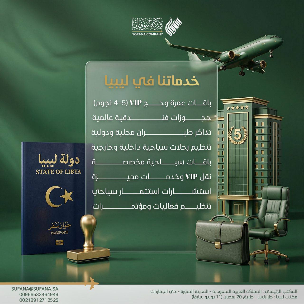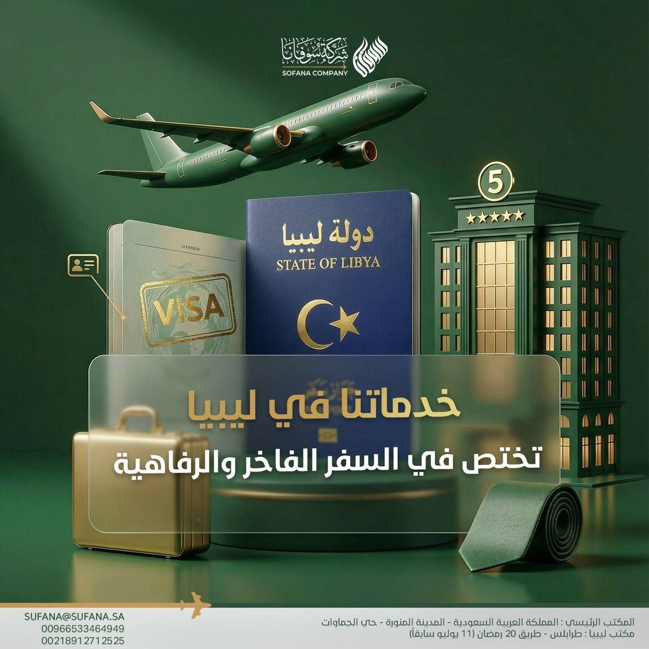 نختص في السفر الفاخر والرفاهية وخدمات رجال الأعمال داخل ليبيا، مع تنسيق حجوزات الفنادق والتنقلات وإدارة التفاصيل بدقة.